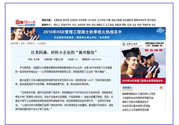 中國化工報、中國建筑新聞網——江蘇同康:材料小企業的“新興情結”