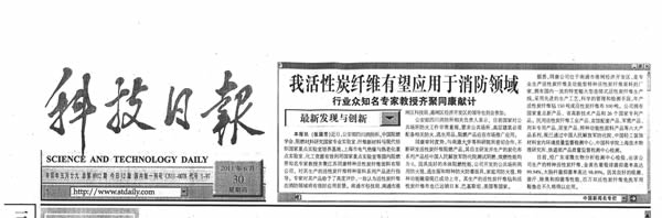 | 同康活性炭纖維消防領(lǐng)域應(yīng)用----2011年6月30日科技日報 |